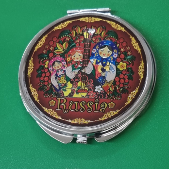 08CHE-F-M02 Зерк.мет.фольга орнам. пл.D7 "Матрешки с балалайкой на красном фоне"