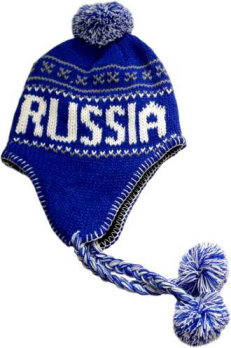 102C02-RU-CL07 Р Шапочка трикотаж c помпоном"RUSSIA" цв.син.бел.буквы