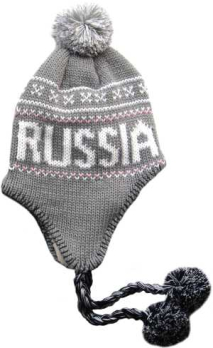 102C02-RU-GR Р Шапочка трикотаж c помпоном "RUSSIA" цв.серый