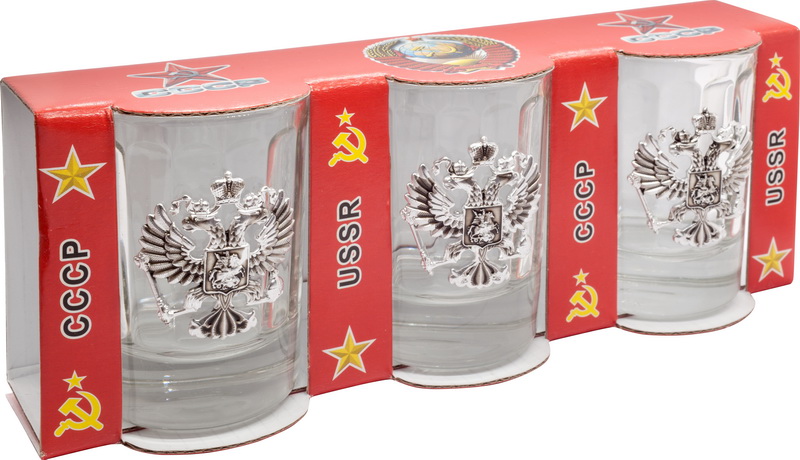 CT-M-EM-10BL-3 Набор стопок со значком "Герб России"3шт черн