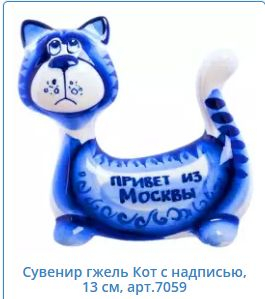 Сувенир гжель Кот с надписью, 13см, арт.7059