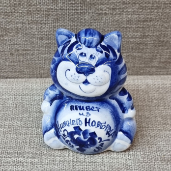 Кот гжель с надписью, 9.5 см, 7062