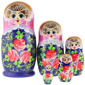 MS0503a-Klus-04 Матрешка 5 мест роз.платок синяя