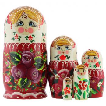MS0503KojN-05 Матрешка 5 мест бело-красная розы