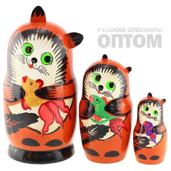 MZ3-28 Матрешка-животное 3места Кот с рыбой оранж.