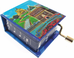 471R-76K10 Муз.шкатулка фольга "Нижн.Новгород.Дмитровская башня-Коллаж" (К Элизе) цв.синий