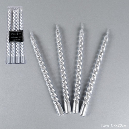 728698 Свеча 4 штуки 20х1,7 см набор / TR-700 /уп 144/ серебро