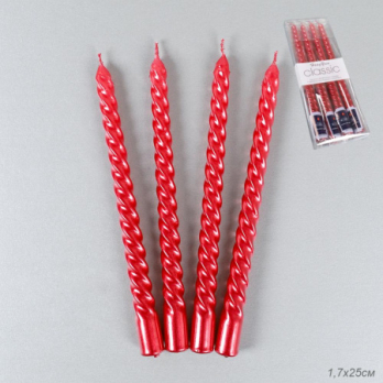 728740 Свеча 4 штуки 25x1,7 см набор / FG-187 /уп 72/ красный
