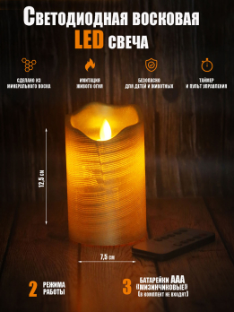К31128 Свеча светодиодная восковая с пультом управления 7,2*12,5