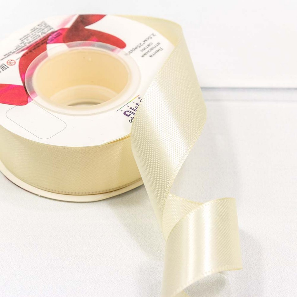 Лента Атласная Cатин 2,5см*25ярд Шампань 1/5