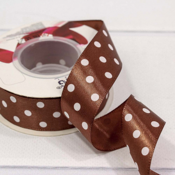 Лента Атласная Горох 2,5см*25 ярд Шоколадный 1/8 1/144