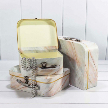 Коробки Набор 1/3 Чемодан "Мрамор" Бело-коралловый 30*21*9,5