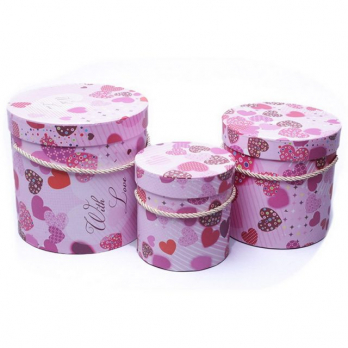 Коробки Цилиндр Набор 1/3 18*17,2 "Сердечки" Розовый