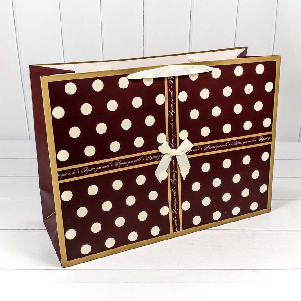 Пакет подарочный "Горошек" тёмный фон 210г 55*40*20 1/10 1/60