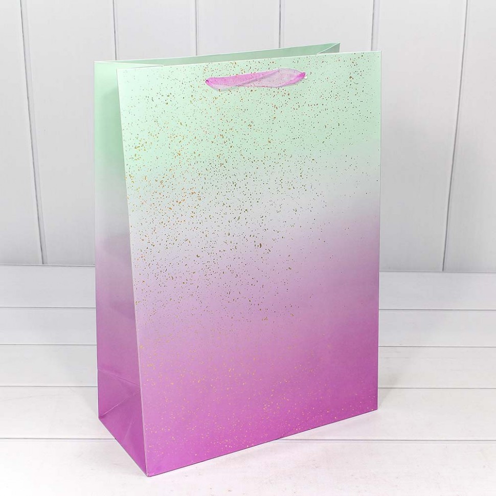 Пакет подарочный "Градиент" с блестящими вкраплениями (микс) 32*45*15 1/20