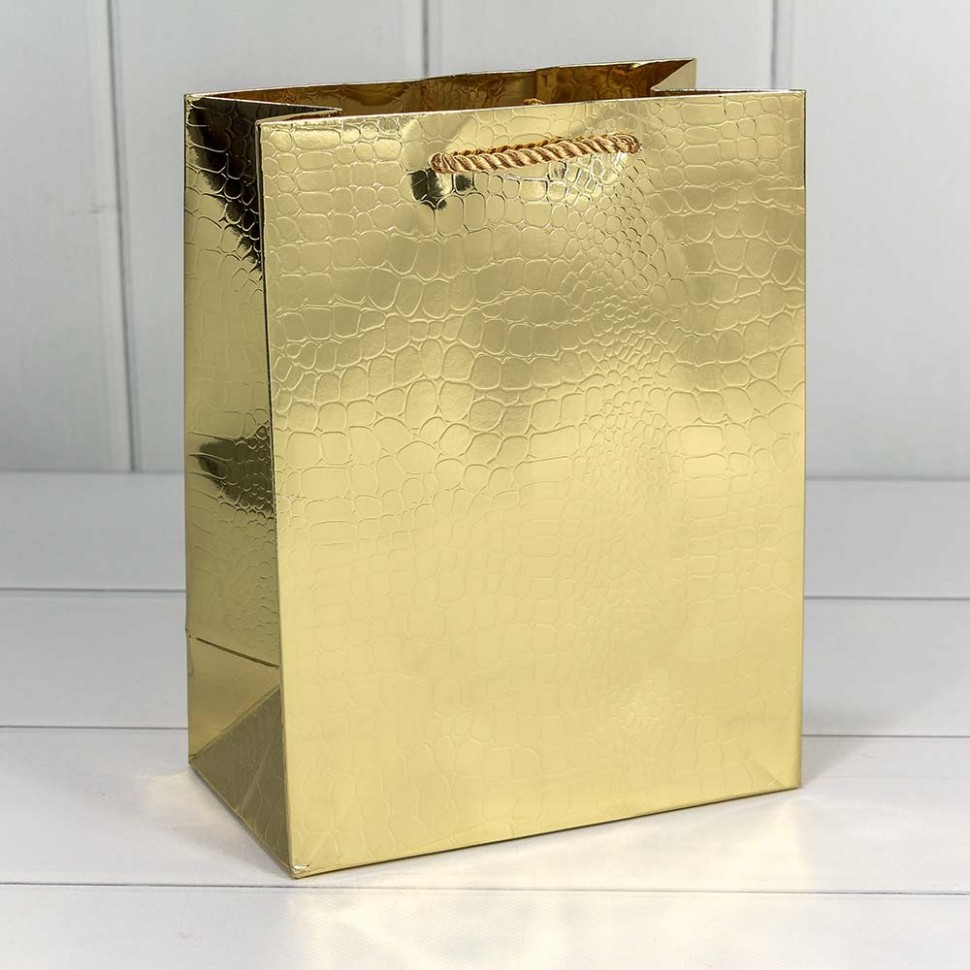 Пакет подарочный "Кожа крокодила" Золотой 18*23*10 (10)