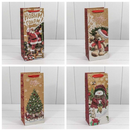 Пакет подарочный Крафт "Новогодний"(микс) 14*35*11 (20)