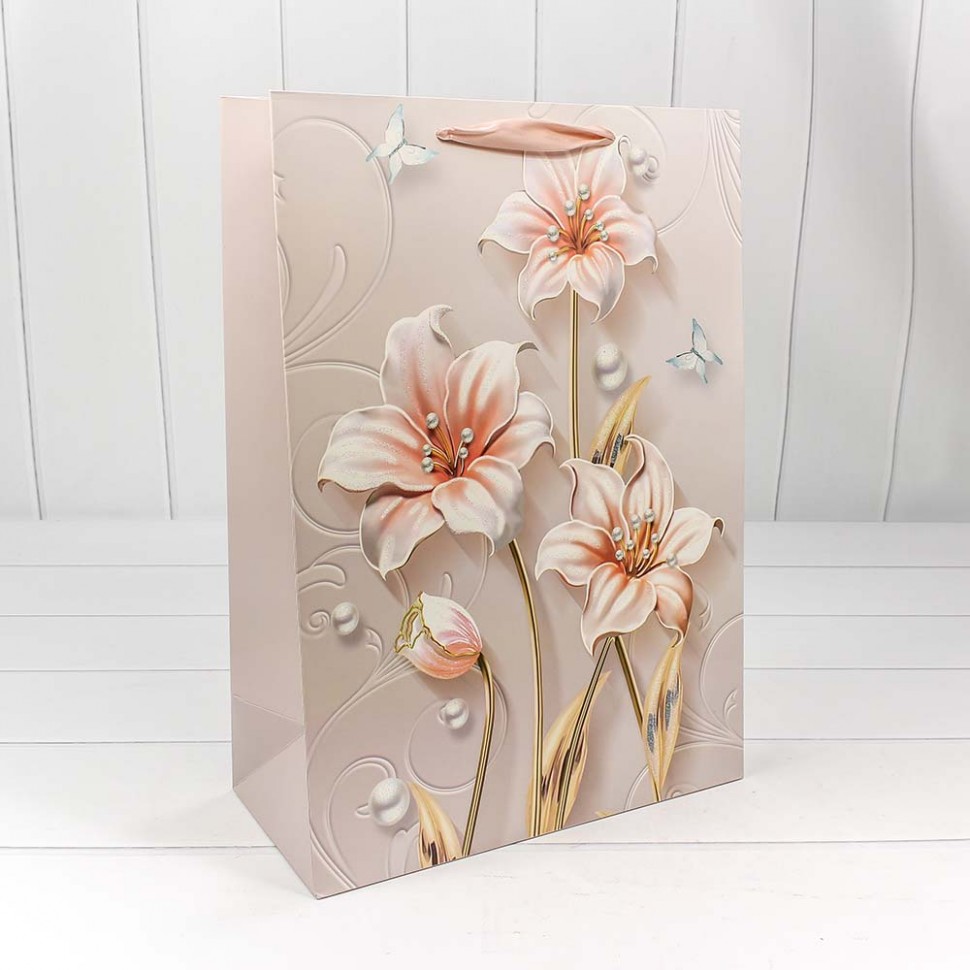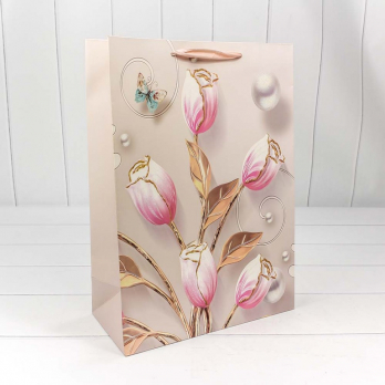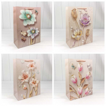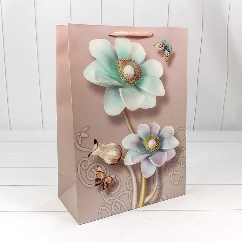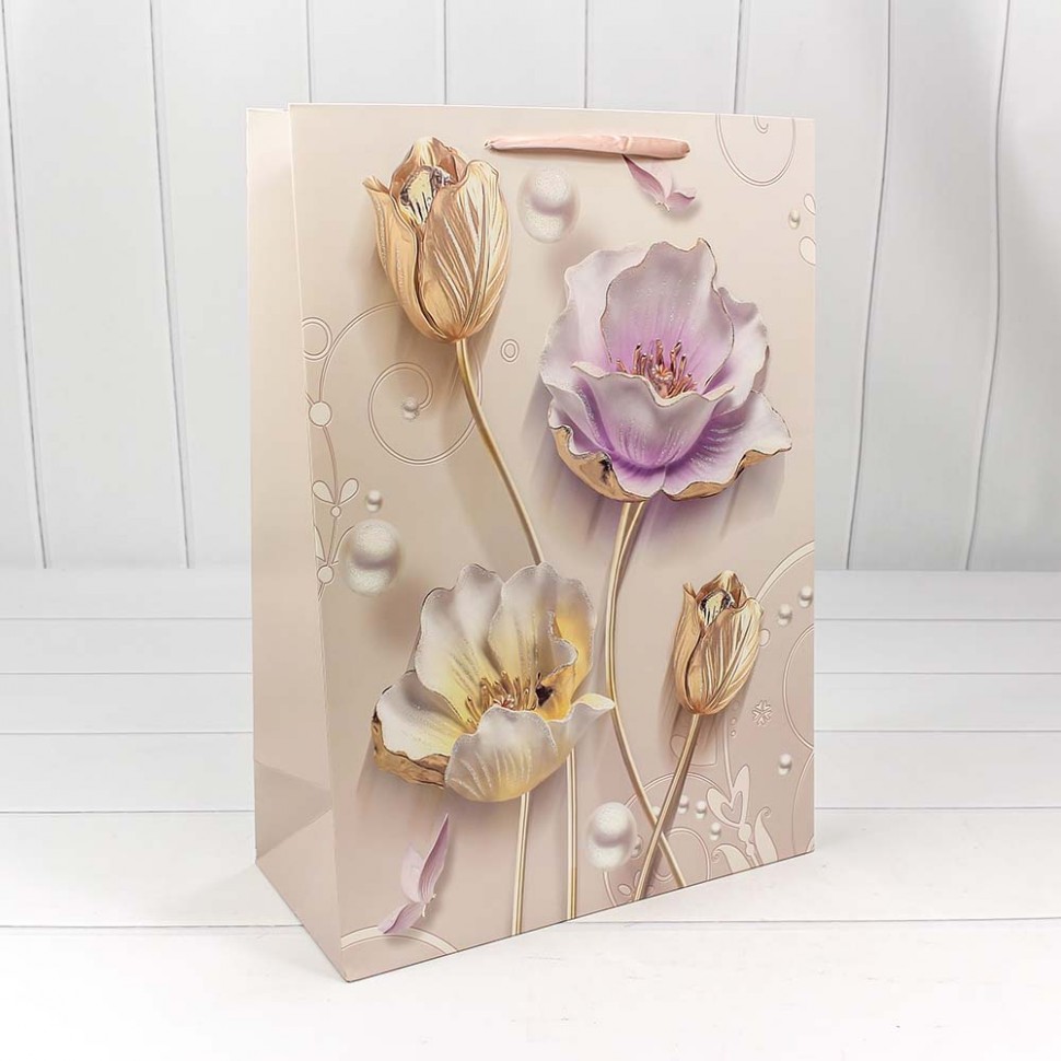 Пакет подарочный "Нежные цветы" с блеском (микс) 32*45*15 210г 1/20 1/120