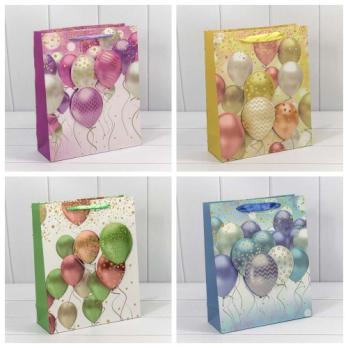 Пакет подарочный с 3D апликацией "Воздушные шары"(микс) 26*32*13 210г 1/20