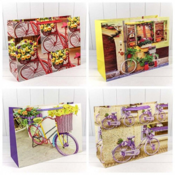 Пакет подарочный с блеском "Велосипеды" 230г (микс) 55*40*20 1/20