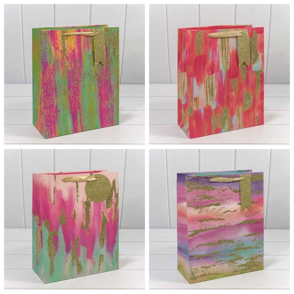 Пакет подарочный с блёстками "Акварель" (микс) 26*32*12 210г 1/20