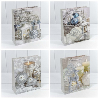 Пакет подарочный с блёстками "Новый год" (микс) 26*32*10 210г 1/20