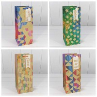 Пакет подарочный с тиснением "Золотая геометрия"(микс) 14*35*14 210г 1/20