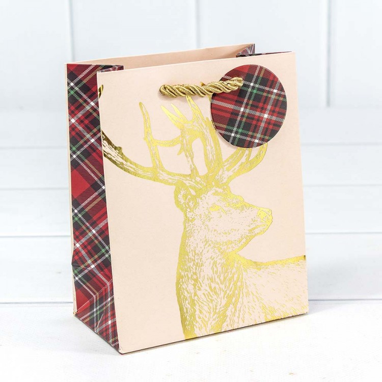 Пакет подарочный "Золотой олень" 12*15*6,7 1/10