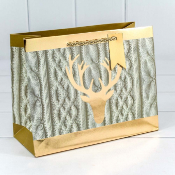 Пакет подарочный "Золотой олень на вязаном фоне" 55*40*20 1/10