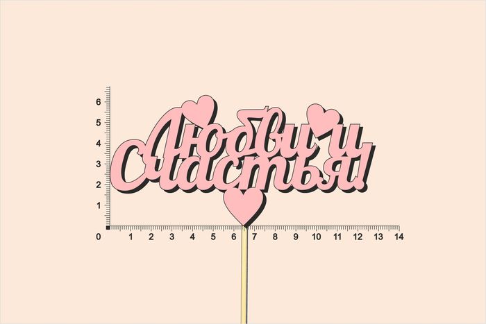 Тп141-04-0505НТоппер "Любви и счастья" (13*28) МДФ 3мм, окрашен., оформл., Розовый, Уп-10 шт.