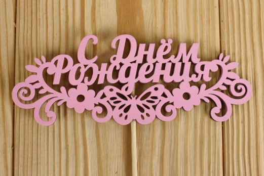 Тп215-04-0505НТоппер "С Днём рождения" с бабочкой (14,5*28) МДФ 3мм, окрашен., оформл., Розовый