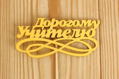 Тп221-04-1616Н Топпер "Дорогому учителю" с вензелем (10*26) МДФ 3мм, окрашен. на шпажке, Желтый, 10