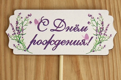 Тп253-02-0000Н Топпер "С Днём рождения" с лавандой, на шпажке (10*27) МДФ 3мм,(10)