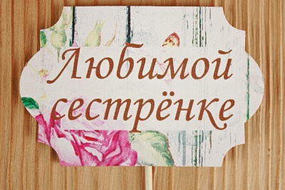 Тп289-02-0000Н Топпер "Любимой сестрёнке" классика №1 (8*28) МДФ 3мм, УФ печать, на шпажке, Уп-10 шт