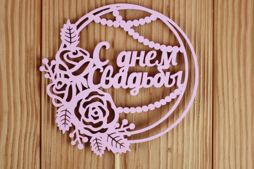 Тп330-04-3939Н Топпер "С днём Свадьбы" в круге (11,2*30) МДФ 3мм, окрашен. на шпажке, Розовый 10шт