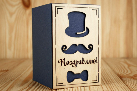 ОпдФ16-00-0008 Открытка "Поздравляю!" для мужчины (9*14) Фанера 3мм