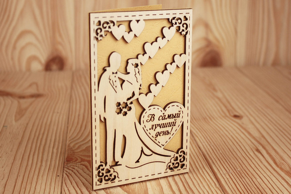 ОпдФ23-00-0016 Открытка свадебная "В самый лучший день!" (9*14) Фанера 3мм