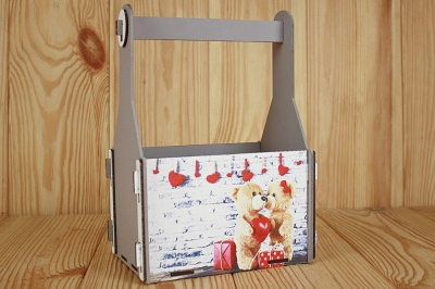 ПУ628-02-4700 Подарочный ящик "Мишки" (17*11*23) МДФ 3мм, УФ печать, окраш., оформл., Серый пастель